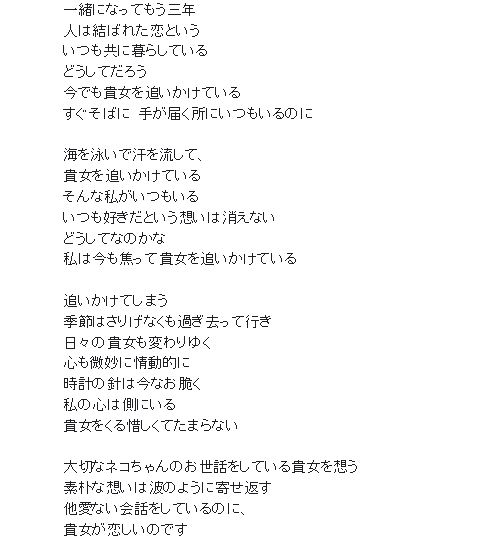これを「詞」(歌の歌詞)にしていくには、構成を少し直してみます。